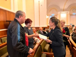 Viceprimarul Antonia Nica a felicitat marți, 17 septembrie, 30 de cupluri care au sărbătorit nunta de aur. Aflat la cea de-a X-a ediție din acest an, evenimentul este organizat de municipalitate în semn de prețuire pentru familiile care au împlinit 50 de ani de căsătorie neîntreruptă și au domiciliul în Oradea.