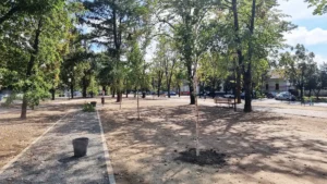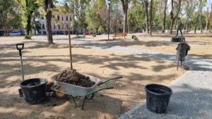 Încă de săptămâna trecută au demarat lucrările de amenajare peisagistică în Parcul Petofi, prin însămânțarea gazonului, iar în această dimineață au început lucrările de plantare a primilor arbori.