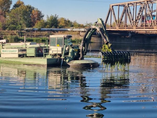 Din cauza nivelului scăzut al apei din acest an, vegetația acvatică s-a dezvoltat excesiv, mai ales pe malul drept al râului. Pentru curățare, se folosește un utilaj special – o dragă cu cupă cositoare – care taie și îndepărtează plantele fără a afecta albia. Vegetația cosită este colectată ulterior la barajul Prizei de Apă din Ioșia, pentru a evita deplasarea altor utilaje în zonă.