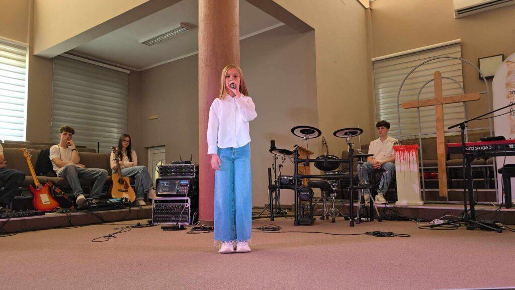 Rania Oprean, o elevă talentată din clasa I C, a impresionat cu vocea ei publicul prezent. Ea a transmis un mesaj care dăinuie peste veacuri – „A înviat Isus!”