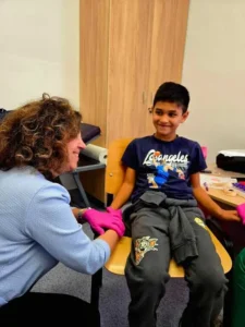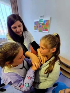 „Având în vedere că din ce în ce mai mulți copii au acces la serviciile pe care le oferă centrul nostru, am considerat oportună reîntâlnirea cu echipa domnului doctor Ryan, medic primar oftalmolog, de la Centrul medical dr. Ryan Bhageerutty din Oradea. Acest fapt a implicat atât un screening oftalmologic, discuții interactive referitoare la sănătate și igienă, cât și analize medicale ulterioare.