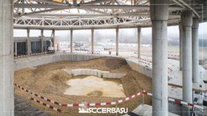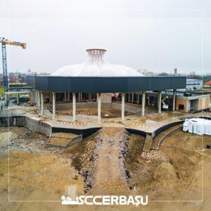 Construcția este realizată de compania Erbașu, care se află în graficul stabilit pentru finalizarea proiectului. Până acum, au fost aplicate termo și hidroizolațiile pe terasă, s-a montat tabla cutată pe structura metalică a acoperișului, iar structura de lemn a fost acoperită cu folie triplu stratificată.