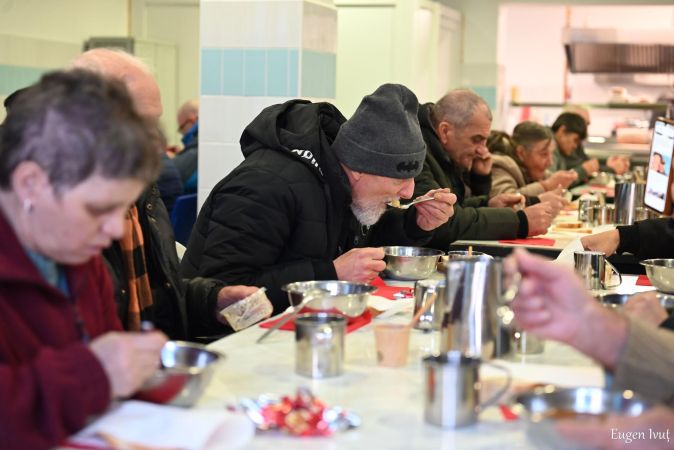 Cantina socială din Oradea, unde 70 de oameni ai străzii și persoane vulnerabile iau masa zilnic.