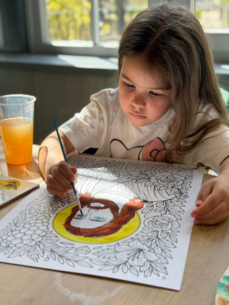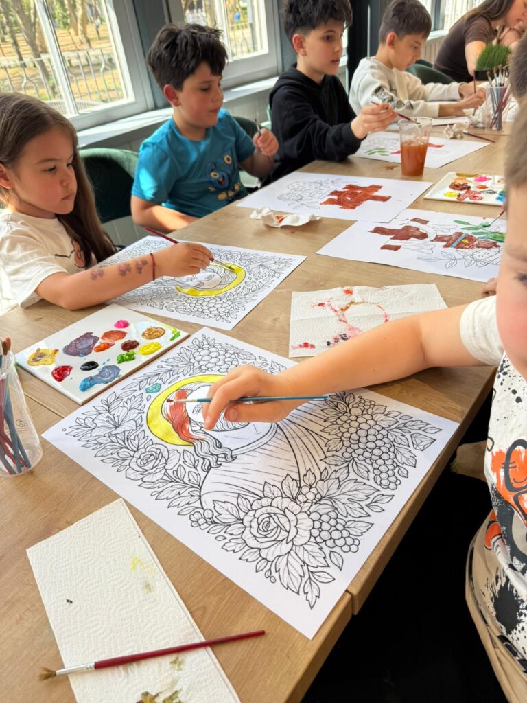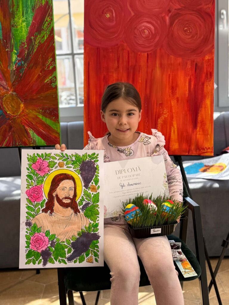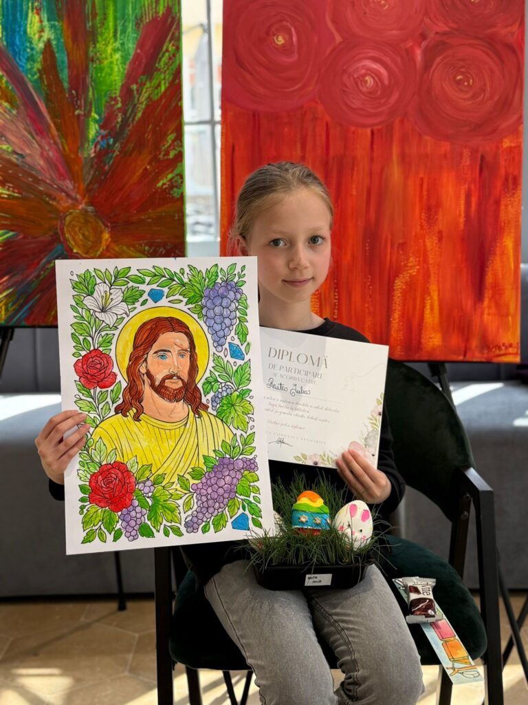 Programul a continuat cu o activitate de pictură pe icoane, pe foi A3. Copiii au lucrat cu atenție și răbdare și au folosit culori pentru a completa imaginile.