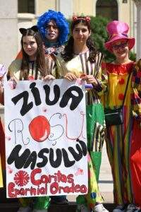 Membrii trupei ,,Prieteni pentru un zâmbet” au participat la un Marș al Nasului Roșu, organizat cu scopul de a aduce un zâmbet pe buzele orădenilor. A fost un mod de a-i face să mai uite din grijile cotidiene și de a atrage atenția asupra problemelor copiilor și tinerilor nevoiași din comunitate, spune Andreea Ghercă, coordonatoarea Departamentului de Voluntariat din cadrul ONG-ului orădean.