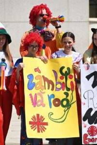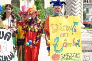 Voluntarii și clovnii Asociației Caritas Eparhial din Oradea au împărțit zâmbete, baloane și veselie trecătorilor din centrul Oradiei.