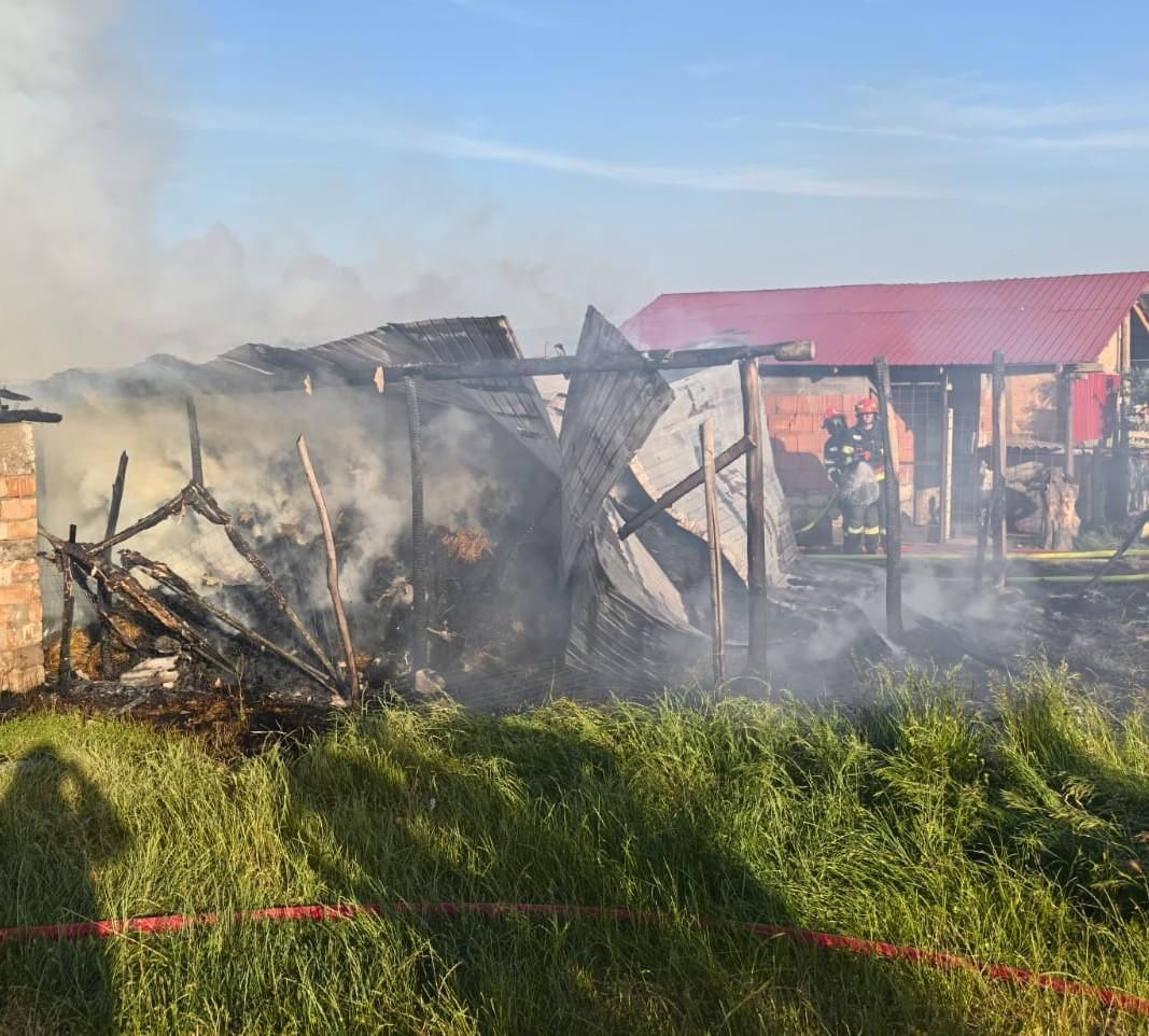 Peste 10 ore de luptă cu flăcările la depozite de furaje. Incendiu provocat de joaca unor copii cu focul