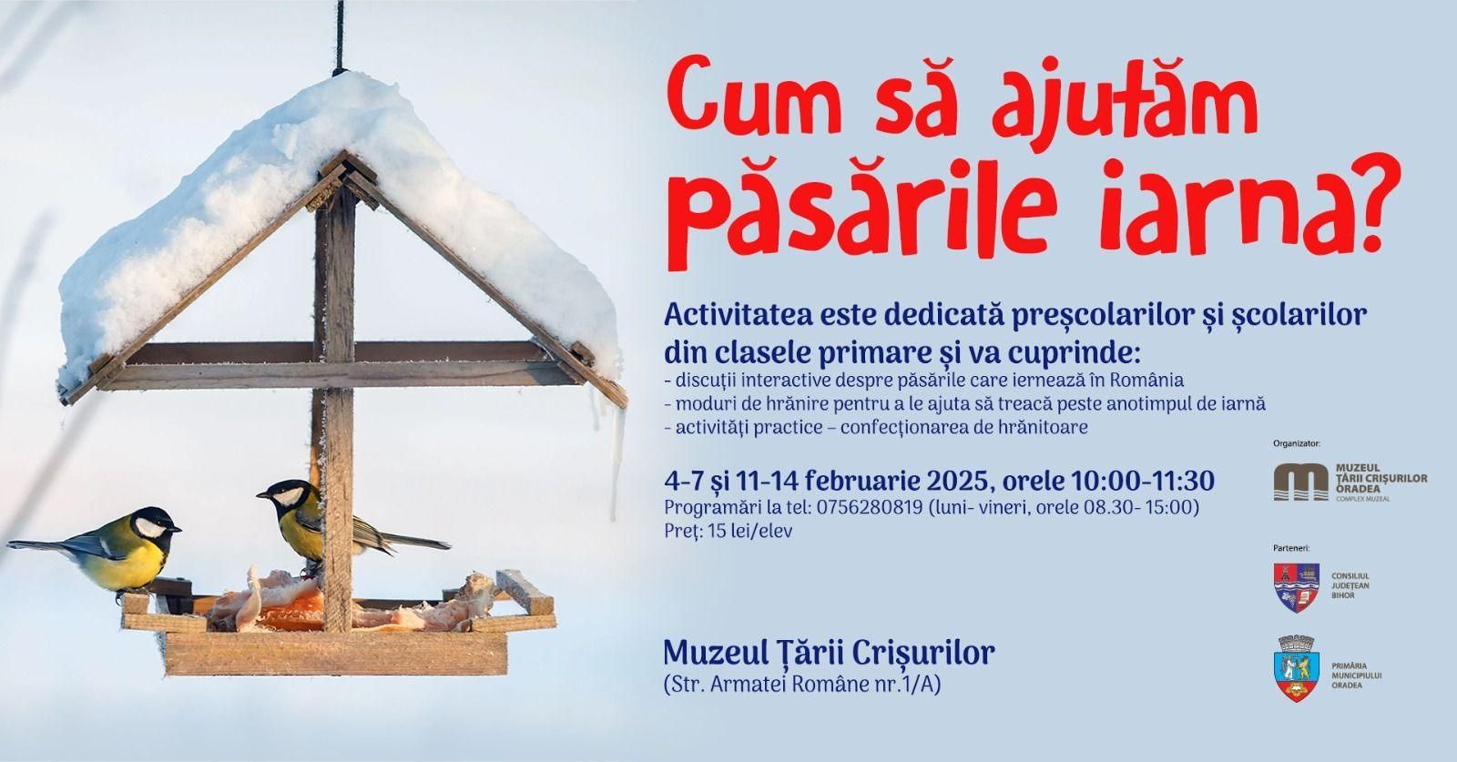 Muzeul Țării Crișurilor Oradea – Complex Muzeal, împreună cu Consiliul Județean Bihor și Primăria Municipiului Oradea, organizează atelierul de educație muzeală „Cum să ajutăm păsările iarna?”.