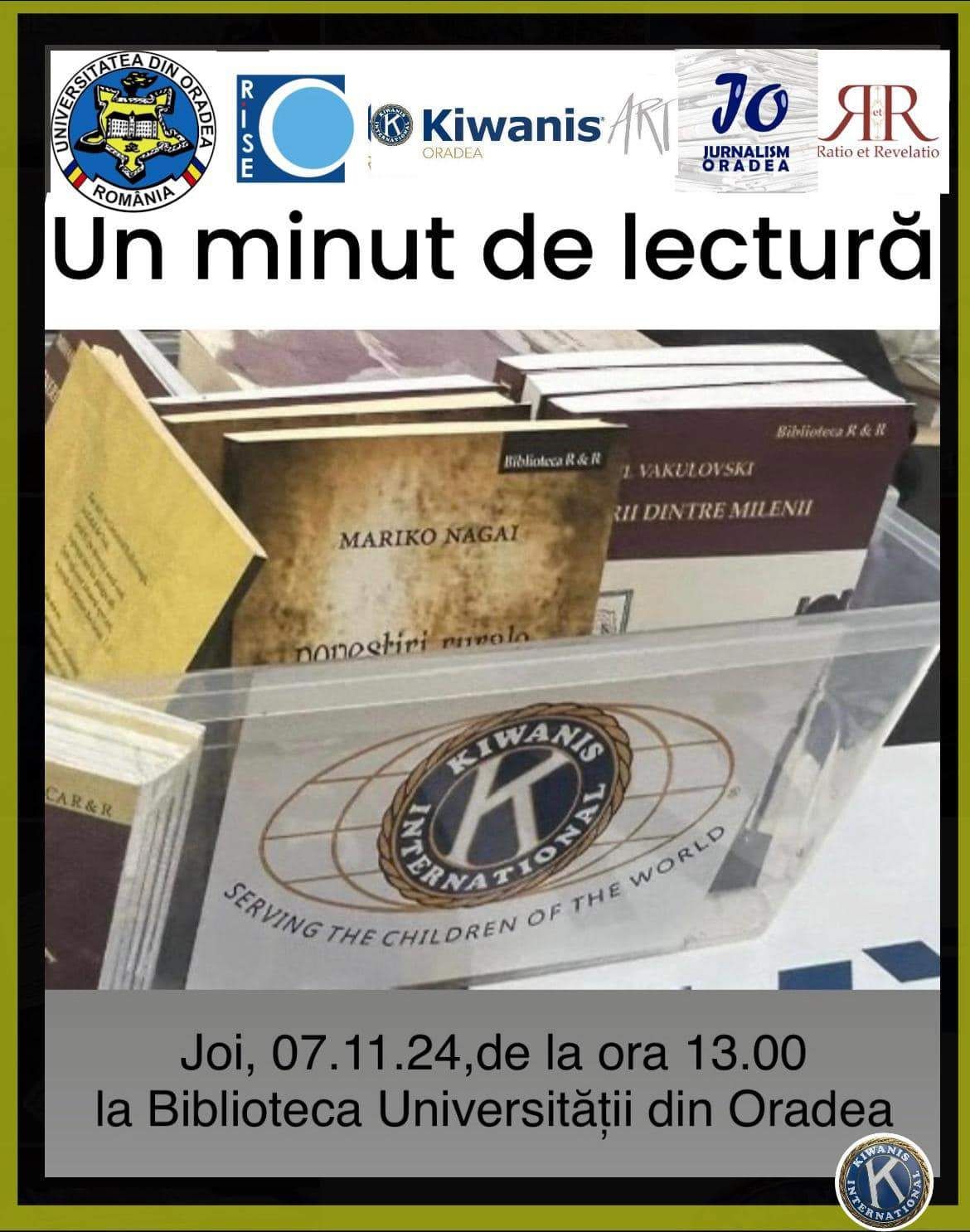 Studenții Universității din Oradea sunt invitați, joi, începând cu ora 13:00, să ia parte la o acțiune de promovare a lecturii, intitulată „Un minut de lectură”.