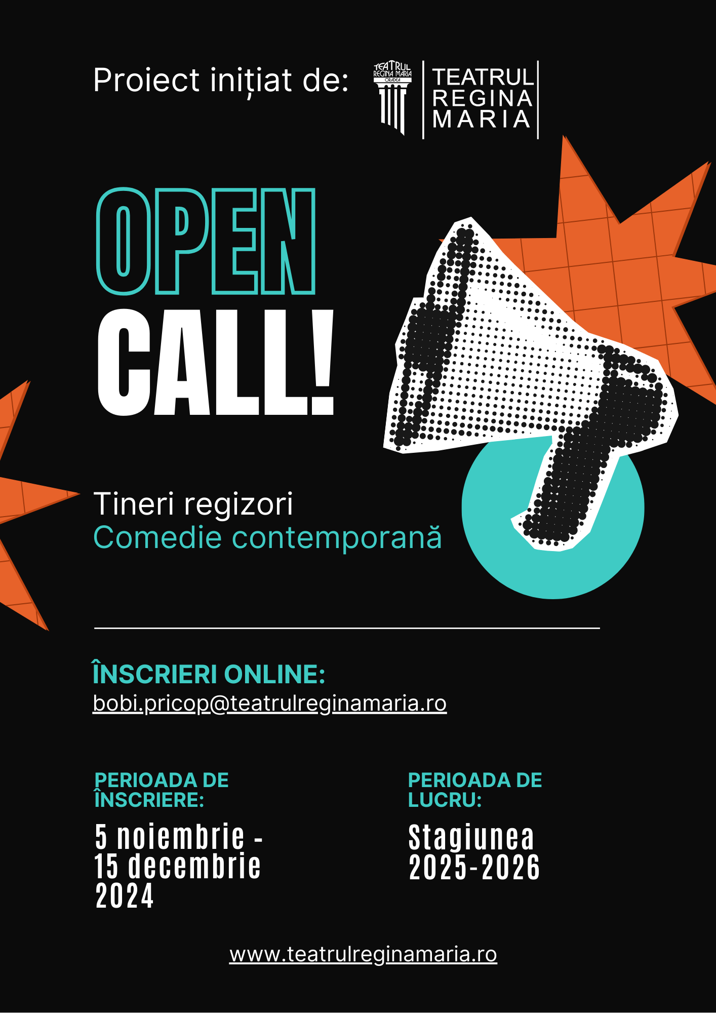 Teatrul „Regina Maria” lansează un „Open Call” adresat tinerilor regizori din România, având ca tematică comedia contemporană.