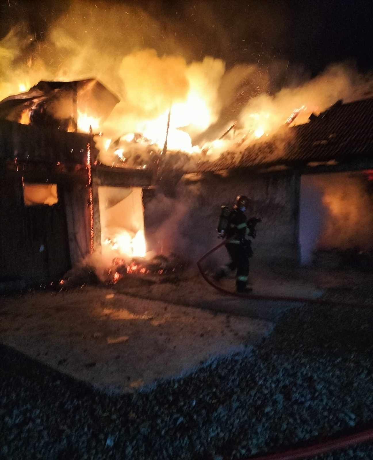 Un grajd și peste 70 de tone de fân și lucernă au ars într-un incendiu la Tileagd. Peste 6 ore de intervenție