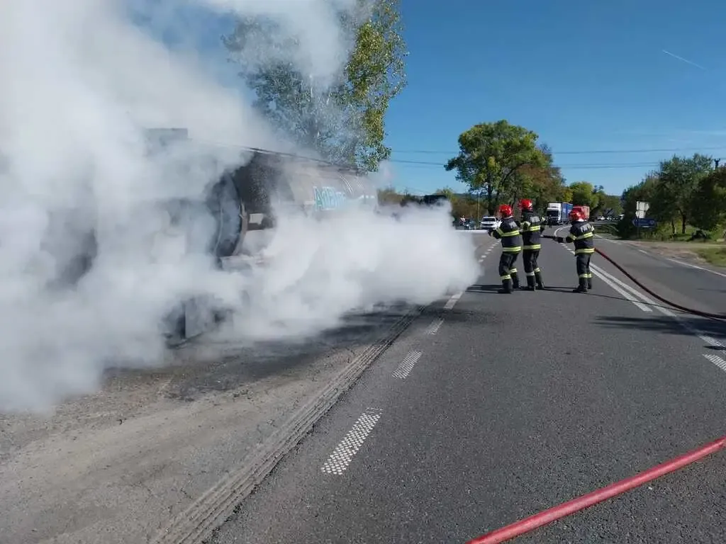 Aproape de o tragedie. Incendiu la o autocisternă pe DN 1, în localitatea Borozel