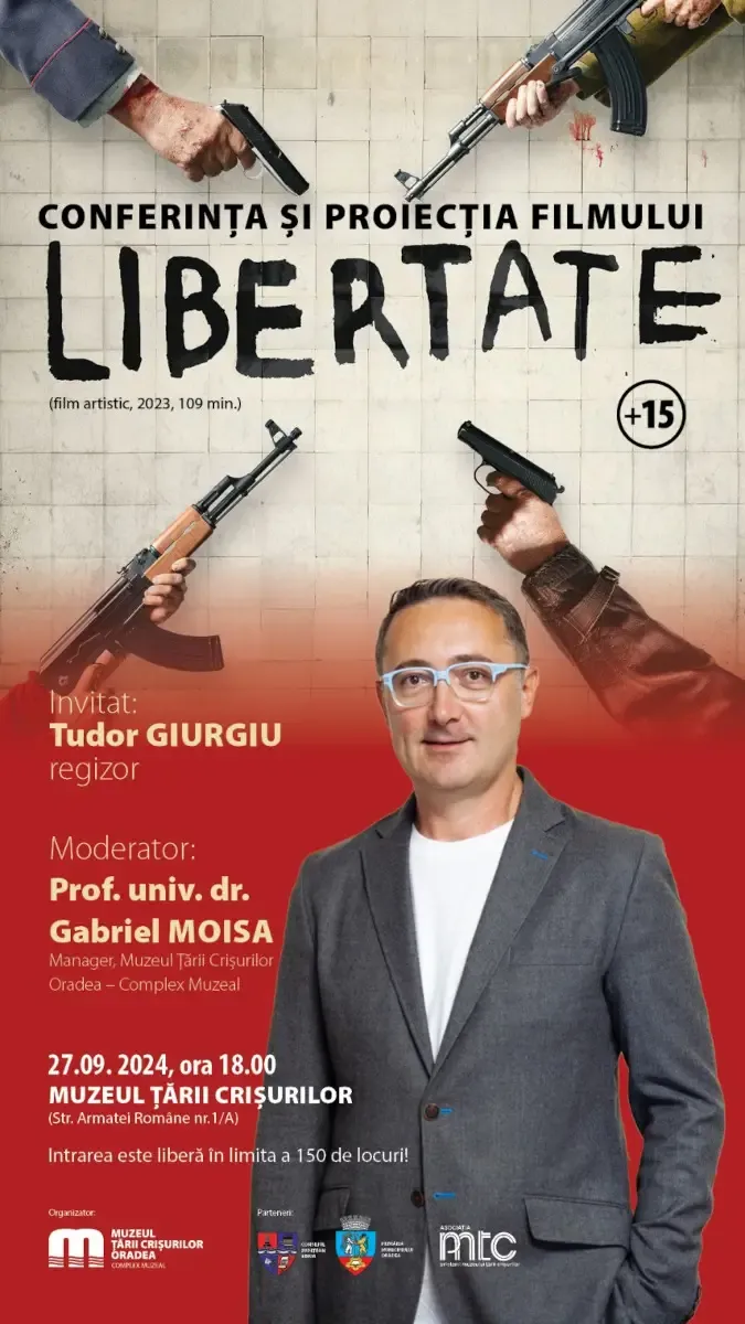 Regizorul Tudor Giurgiu este invitat, în 27 septembrie, la Oradea, să susţină o conferinţă despre libertate şi despre filmul său omonim, într-un eveniment organizat de Muzeul Ţării Crişurilor.