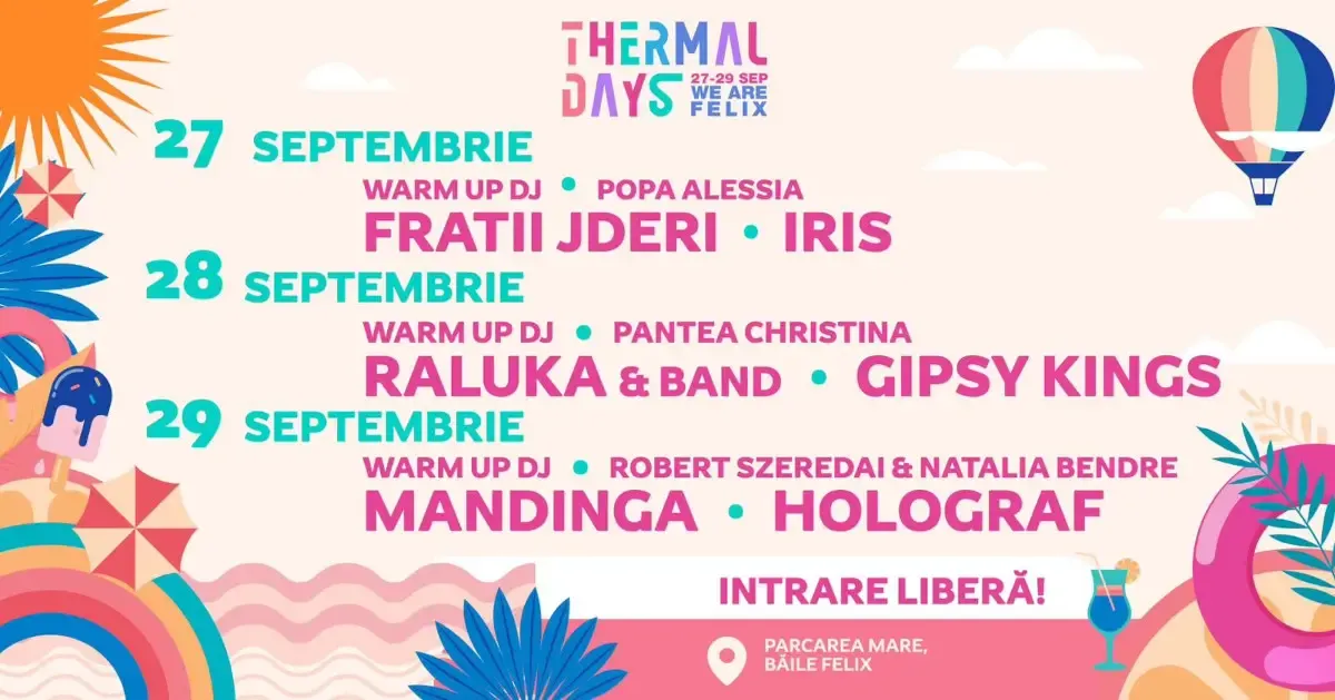 Unul dintre cele mai așteptate evenimente muzicale ale toamnei va avea loc în Băile Felix. Aici faimoasa trupă Gipsy Kings va susține un concert în cadrul festivalului Thermal Days. Trupa este cunoscută pentru răspândirea în lumea întreagă a genului rumba catalana, o muzică pop bazată aproximativ pe muzica tradițională flamenco. Grupul s-a numit inițial Los Reyes.