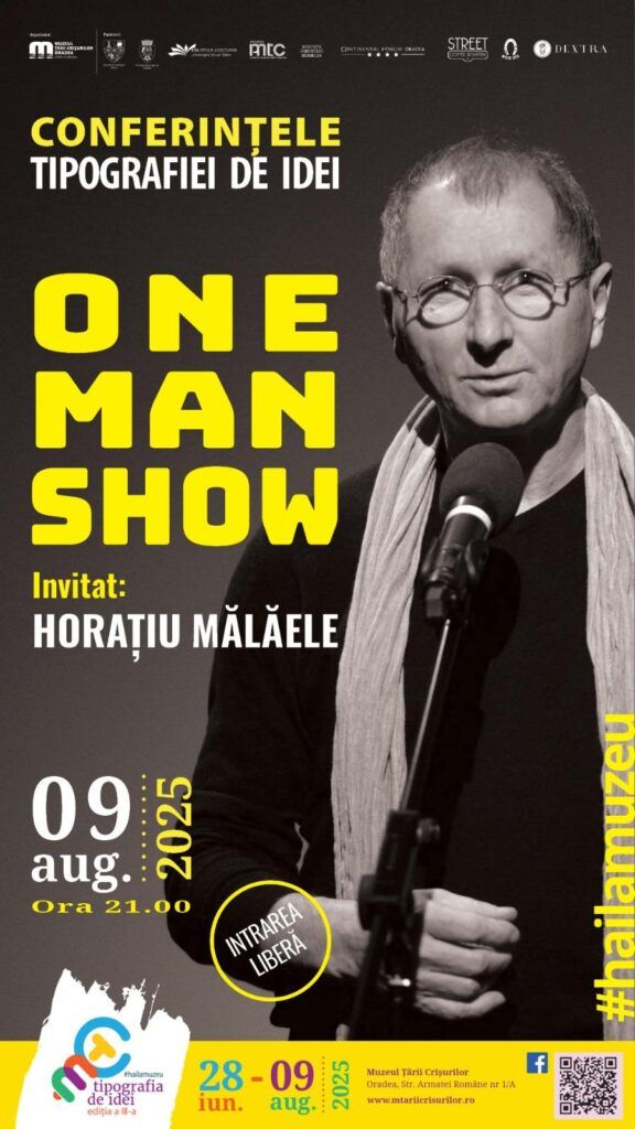 Sâmbătă, 9 august 2025, începând cu ora 21:00, publicul orădean este invitat la un eveniment cultural de excepție: One Man Show cu Horațiu Mălăele, în parcul Muzeului Țării Crișurilor (Str. Armatei Române nr. 1/A). Accesul este gratuit.