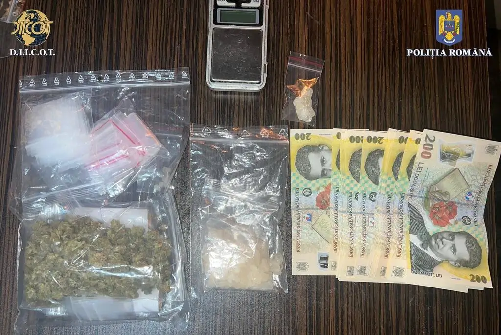 În urma percheziției efectuate la locuința acesteia, au fost descoperite și ridicate cantități de substanțe interzise (canabis și ecstasy), un cântar electronic de precizie, 115 pungi zip-lock de diferite dimensiuni, precum și alte mijloace de probă.