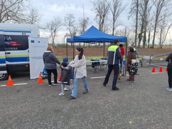 Pentru cei mici, polițiștii au pregătit Laboratorul mobil de siguranță rutieră, un spațiu educativ unde copiii au vizionat filme tematice și au învățat, prin joc, regulile de bază ale circulației. Activitatea a continuat cu demonstrații practice privind traversarea corectă a străzii, sub îndrumarea polițiștilor de la prevenire.