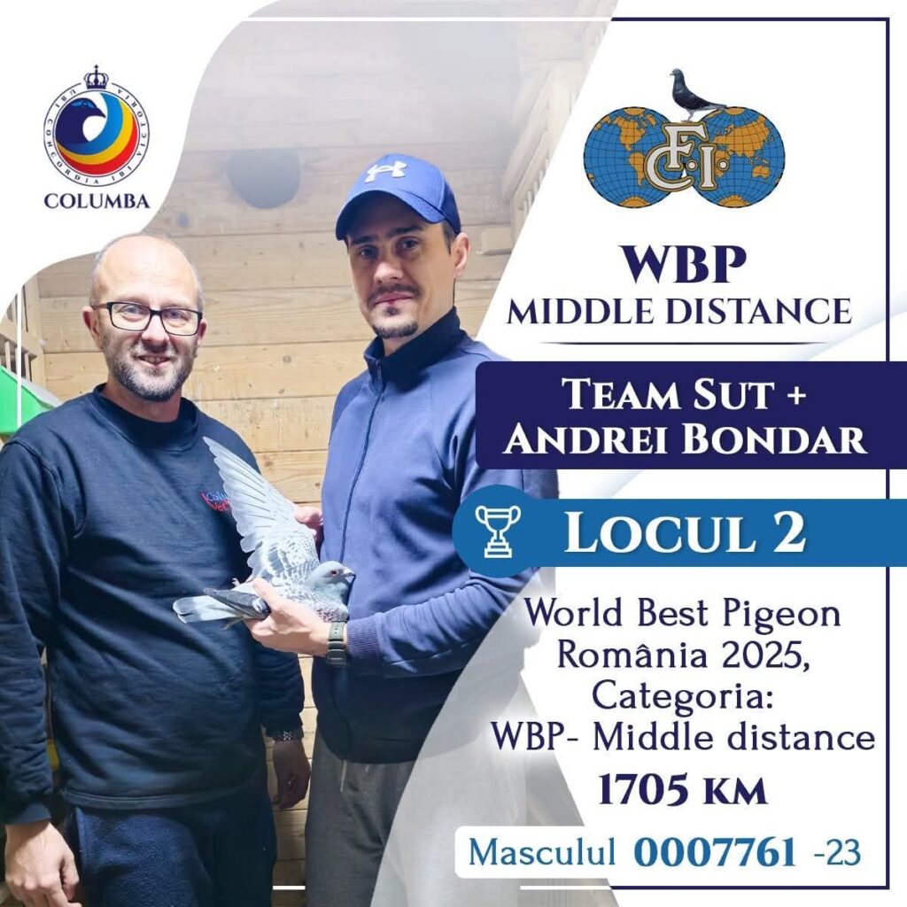 La această ediție, echipa de crescători formată din Sut și Andrei Bondar, din Oradea, va participa cu cinci porumbei, în urma rezultatelor obținute la concursurile din 2025. Printre aceștia se remarcă masculul 7761-23, cunoscut sub numele de „Mr. Olympia”, un porumbel care a obținut trei locuri doi la nivel național și a contribuit decisiv la câștigarea mai multor titluri importante în 2025. Masculul este nominalizat din prima poziție la Olimpiada Columbofilă de la Dortmund, la categoria D All Round, și va reprezenta România și la World Best Pigeon, la categoria Demifond. Porumbelul provine din linii cunoscute, ca Gaby Vandenabeele și Shaerlaeckens, și a excelat la concursuri pe distanțe cuprinse între 100 și 500 de kilometri.