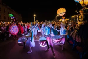 Spectacolele stradale de percuţie, personajele fantastice pe picioroange sau desprinse din basmele acvatice vor fi oferite de artiştii de la Kalimba Batucada (Spania), Underwater World (Germania) şi White World (Franţa).