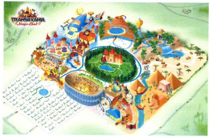 Parcul va avea nouă zone tematice: satul western și tabăra indiană, Visul copiilor, Descoperirea spațiului cosmic, Călătorie spre centrul pământului, Zoo safari cu traseu fluvial, Egiptul Antic, Amfiteatrul roman, Castelul lui Dracula și o fabrică de ciocolată).