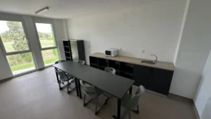 Reprezentanții Universității, cei ai Primăriei, ai constructorului și jurnaliștii prezenți la eveniment au trecut în revistă dotările noului cămin studențesc: bucătării în care se găsesc cuptoare cu microunde, anexe gospodărești cu mașini de spălat și de uscat rufe, săli de studiu, lift, zonă de servit masa… Camerele studenților, având circa 20 de metri pătrați fiecare, sunt înzestrate cu frigider, televizor și baie proprie și acces gratuit la internet. „Numai să vrei să stai aici și să înveți”, a subliniat prof. univ. dr. habil. Constantin Bungău.