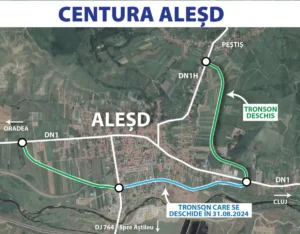 Practic, sâmbătă se deschide ultimul segment al centurii, de 1,6 kilometri, al cărui traseu este cuprins între sensul giratoriu amenajat pe DN1 la intrarea în Aleșd dinspre Cluj și intersecția cu DJ 764 Aleșd – Beiuș. Lucrările din această zonă au fost blocate timp de un an din cauza contestațiilor deciziilor de expropriere emise de CNAIR.