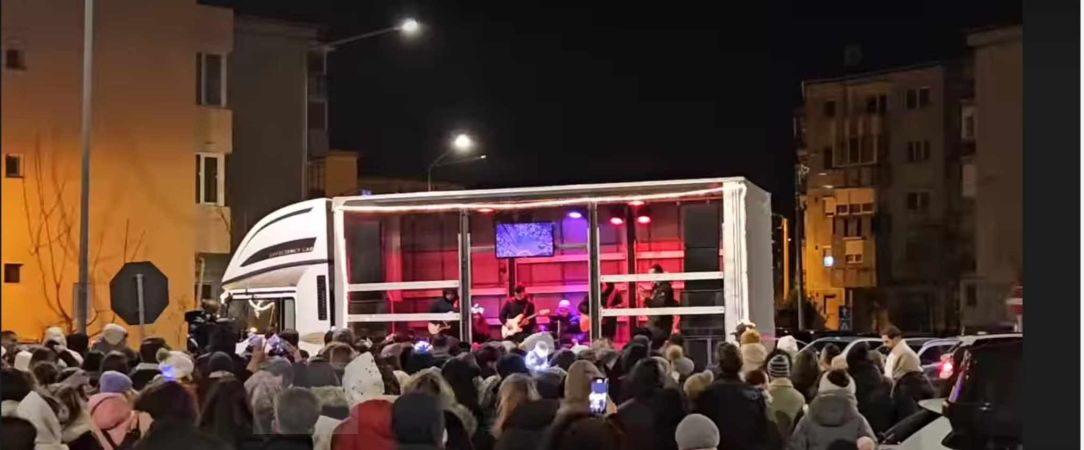 Începând cu primele ore ale serii, caravana muzicală a traversat cartierul Nufărul, aducând bucurie locuitorilor care au ieșit la balcoane sau s-au adunat pe trotuare pentru a asculta colindele. Evenimentul a continuat în Parcul Magnoliei din cartierul Rogerius.