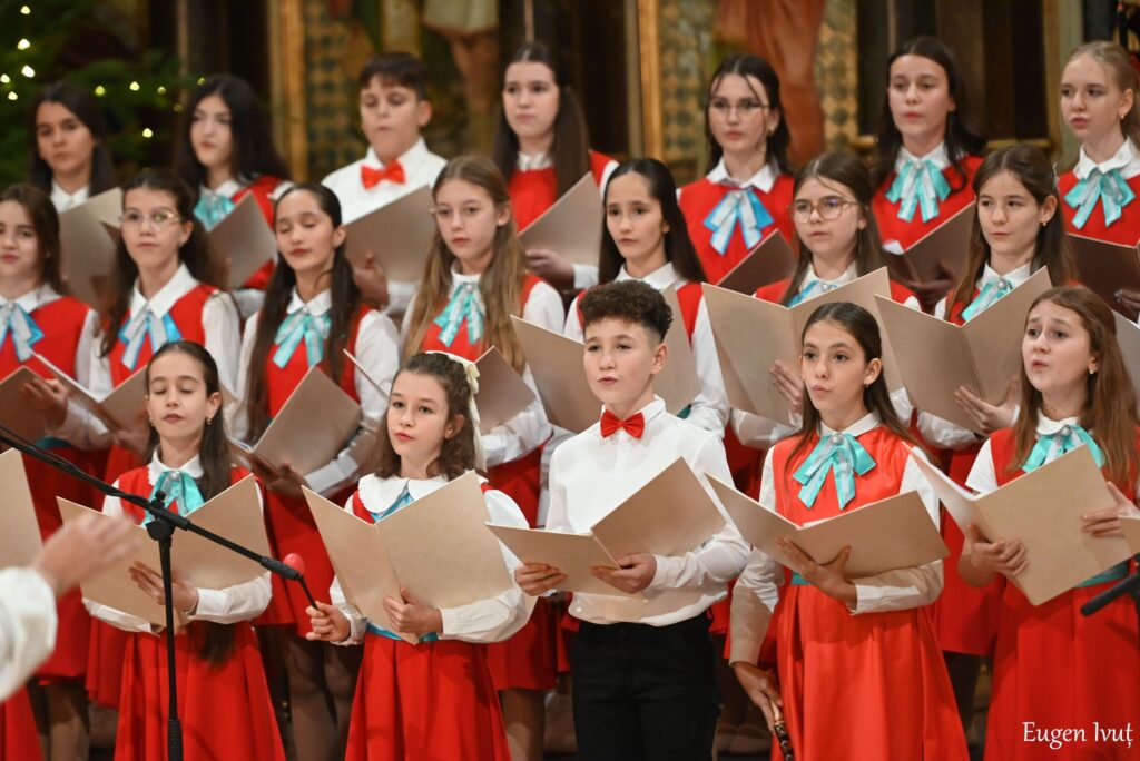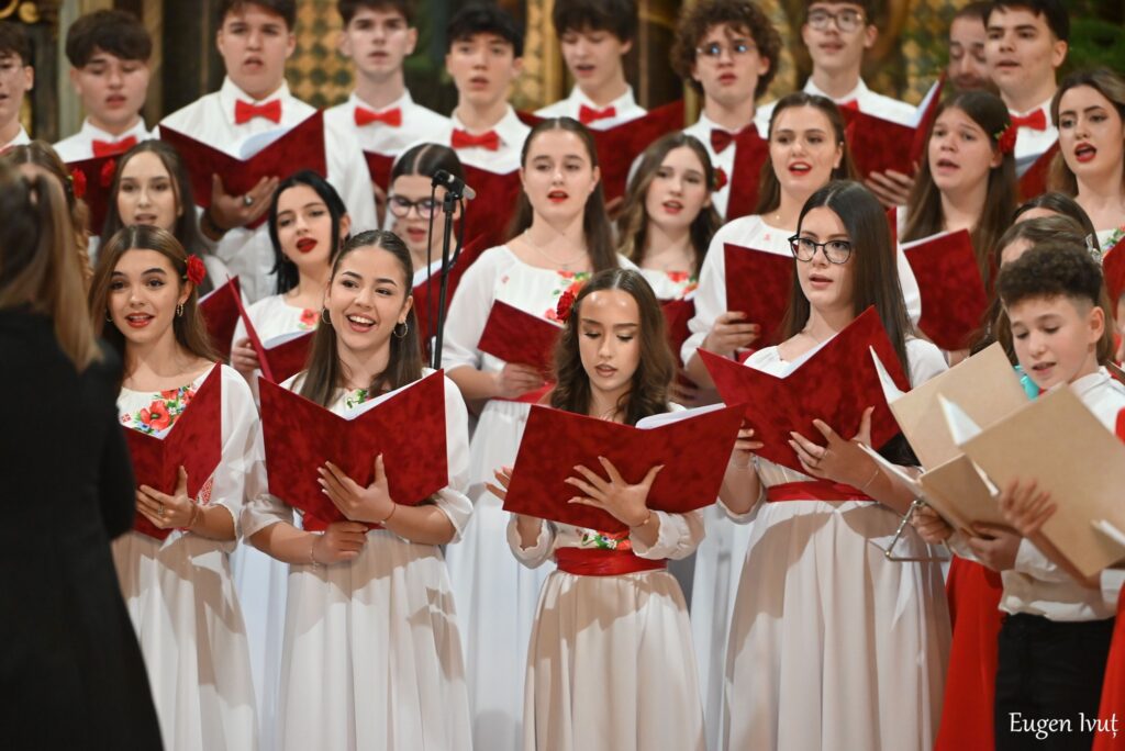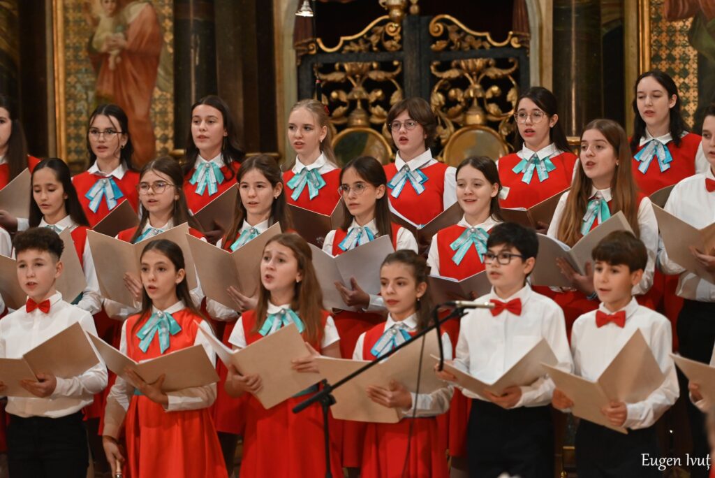 Vocile clare ale elevilor de gimnaziu au umplut spațiul catedralei cu o emoție sinceră, primită în liniște deplină de public.