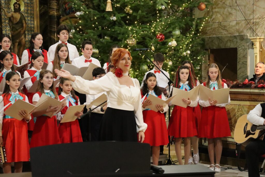 Seara a fost deschisă de Corul „Enjoy Music”, coordonat de Ovidiu Lazăr și preotul Paul Popa. Copiii au interpretat „Sus la poarta Raiului”, „Cerul și-a deschis soborul” și un colaj de colinde românești. Momentele solistice susținute de Vlad Nilghes, Hanna Herczegh, Ayssa Caba, Giorgia Grec, Maia Vesa, Paula Popa și Alessia Popa au adus un plus de sensibilitate și echilibru.