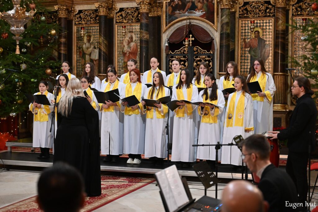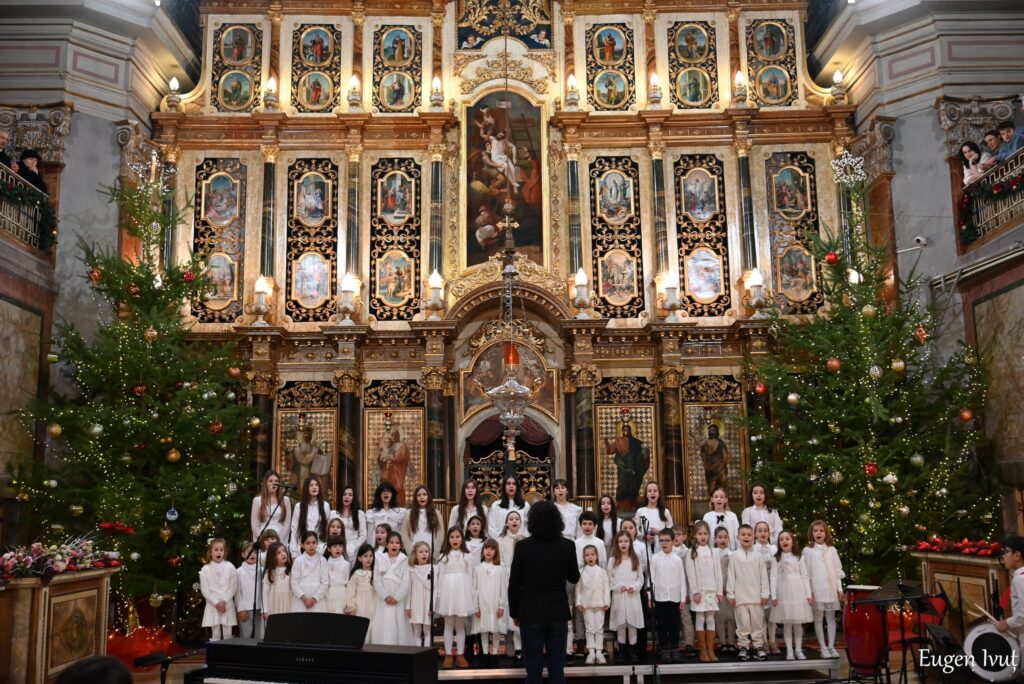În acest an, în fața altarului au cântat cinci coruri și grupuri din Oradea. Programul a cuprins atât colinde vechi, cunoscute din tradiția satelor, cât și piese mai noi, apropiate de lumea copiilor. Prin acestea, publicul a primit lumină, bucurie și speranță.