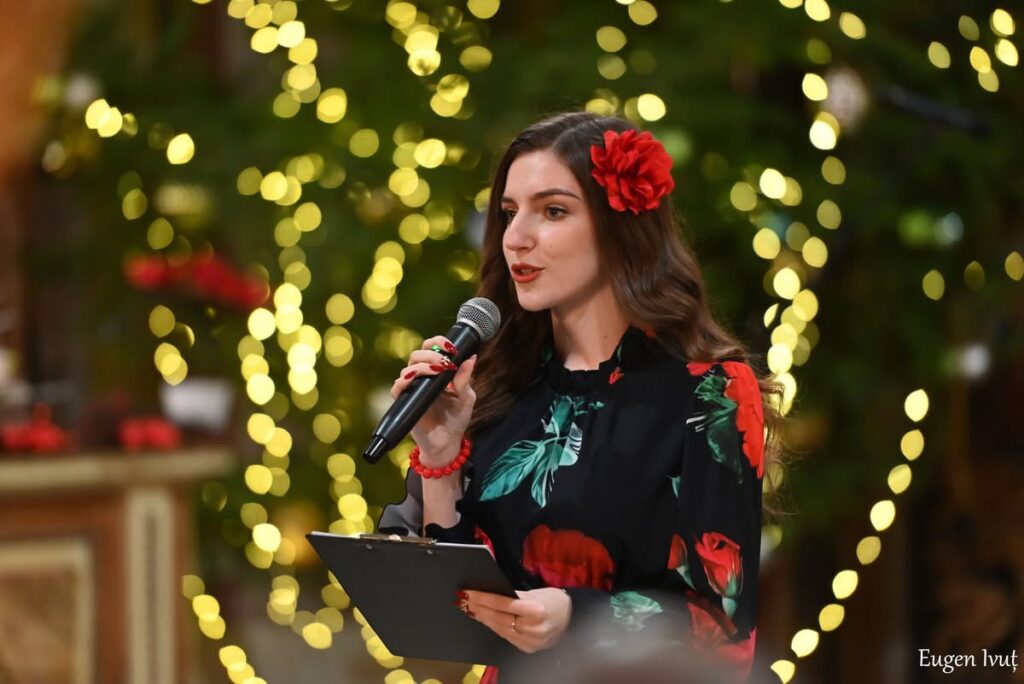 Concertul a fost prezentat de Mariagrazia Roman, elevă în clasa a XI-a A, membră a Corului liceenilor, care a condus programul cu naturalețe și eleganță.