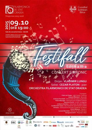 Joi, 9 octombrie 2025, de la ora 19:00, Filarmonica de Stat Oradea îi așteaptă pe melomani la un nou concert simfonic festiv, intitulat FestiFall 2025. Evenimentul va avea loc în Sala de concerte „Enescu – Bartók”, iar intrarea este gratuită, pe baza unei invitații care poate fi ridicată de la casieria Filarmonicii.