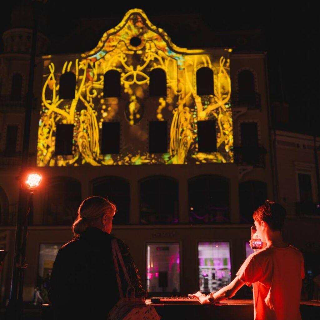 În intervalul orar 22.00-01.00, multiple clădiri din centrul orașului prind viață cu ajutorul unor instalații de lumini spectaculoase: