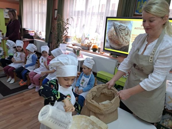 Activitatea a fost educativă și distractivă. Cei mici s-au bucurat de atelierul practic și de gustul pâinii pe care au preparat-o cu propriile mâini.