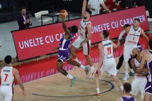 Sfertul al 3-lea a consemnat un nivel de efort consistent de ambele părți, lupta luând locul lucidității în multe momente. Donatas Tarolis și Brandon Brown au adus puncte pe tabela de marcaj, iar avantajul a trecut de zece lungimi. Kalif Young a dinamitat publicul cu mai multe finalizări acrobatice, scorul după 30 minute fiind de 61-46.