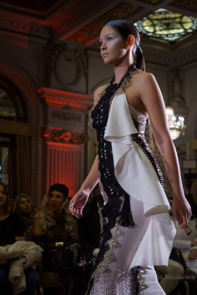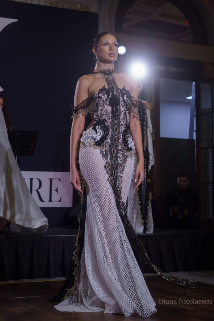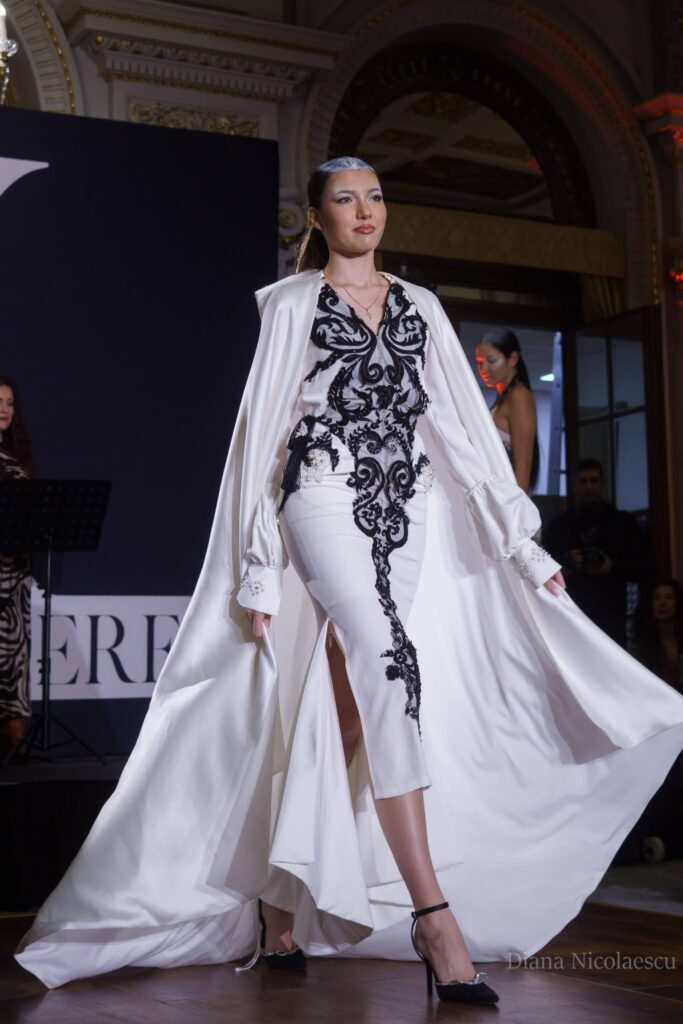 Pe podium au defilat creații inspirate de nume mari ale modei mondiale – de la Galliano și McQueen, la Chanel, Margiela și Elie Saab. Publicul a fost impresionat de diversitatea viziunilor și atenția la detalii, iar atmosfera a fost completată de muzică live, accesorii semnate de creatori români și un decor sofisticat.