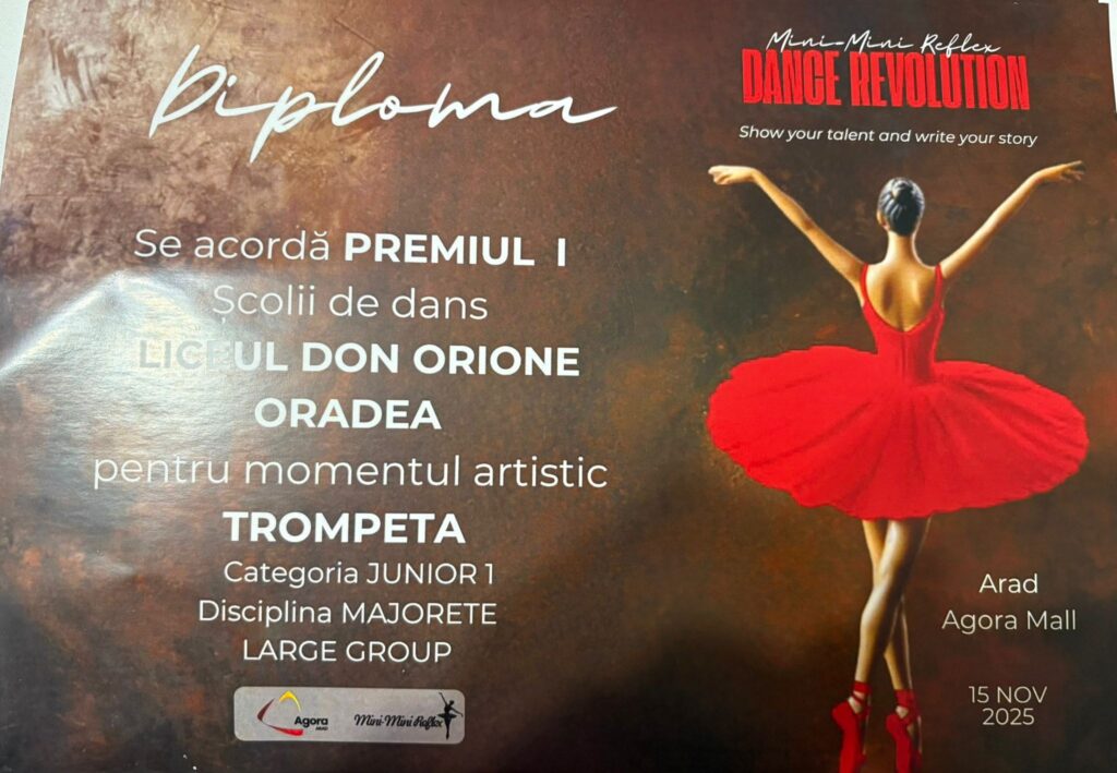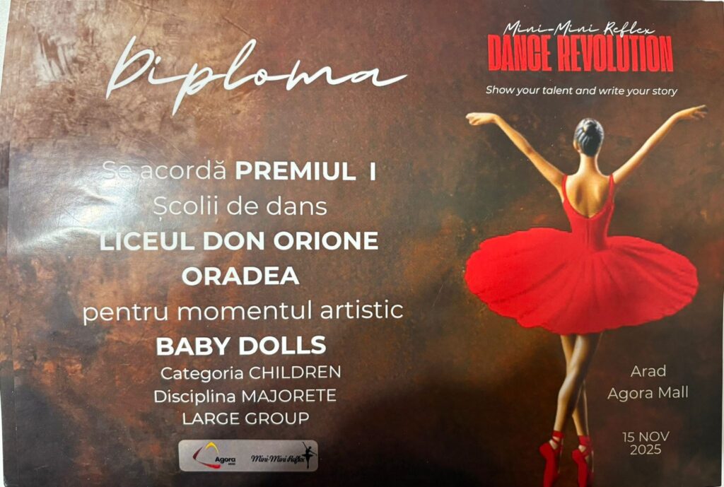 Majoretele Liceului „Don Orione” din Oradea, coordonate de Teodora Moga, au obținut, în acest sfârșit de săptămână, două locuri I la competiția „Mini‑Mini Reflex”. Concursul s-a desfășurat în municipiul Arad. Echipelor „Do Ora Dance” și „Do Ora Baby” le-au fost decernate primele locuri, aducând, astfel, mândrie și bucurie liceului.
