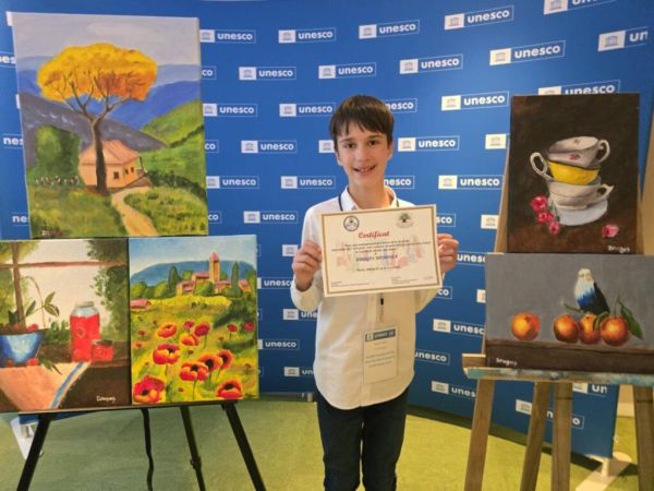 Dragoș Mihai Dobocan, copilul-artist din Oradea, a expus pentru a doua oară la UNESCO Paris