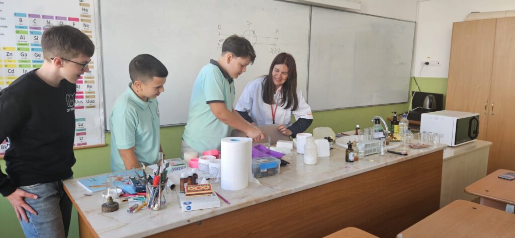 Un punct important al programului a fost activitatea din laboratorul de chimie, unde elevii au realizat flori din săpun. Activitatea a combinat partea practică cu cea creativă și a stârnit interesul tuturor participanților.