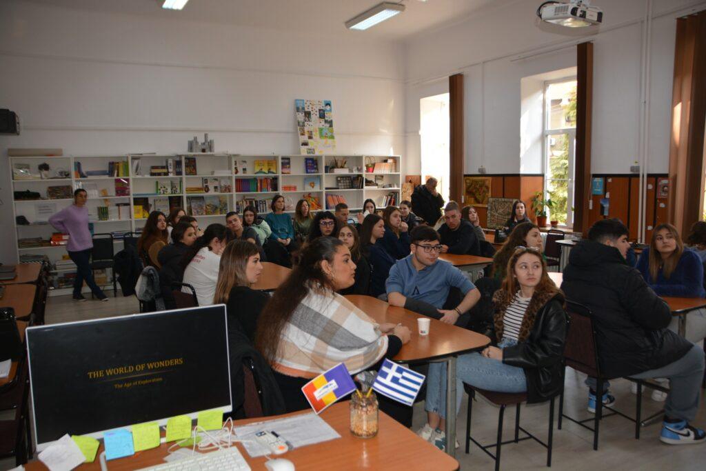 Elevii greci au avut ocazia să vorbească despre orașul lor, Lesvos, despre școala Lykeio Polichnitou, precum și despre experiența lor Erasmus+.