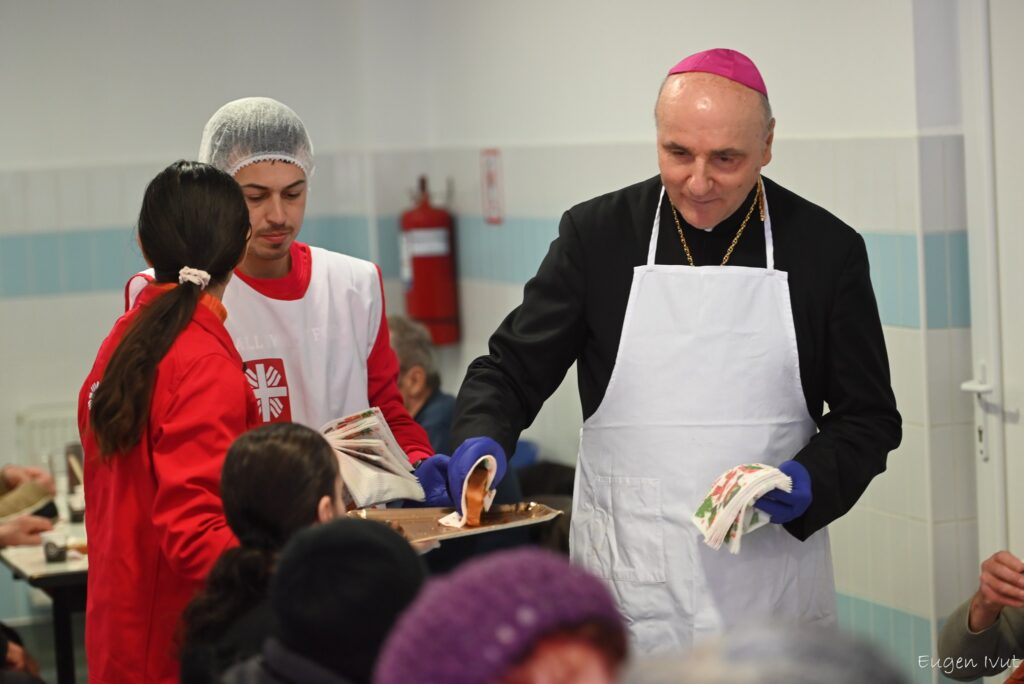 Înainte și în timpul mesei, episcopul Virgil Bercea a vorbit cu cei prezenți, i-a binecuvântat, i-a încurajat și le-a ascultat poveștile. Unora le-a strâns mâna, altora le-a pus mâna pe umăr sau pe obraz, într-un gest părintesc, simplu, lipsit de solemnitate. Au fost momente scurte, fără discursuri, dar care au spus mai mult decât orice cuvânt.