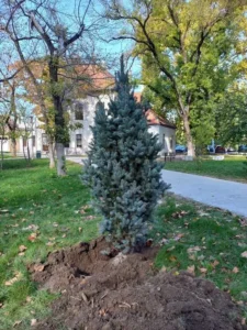 Înainte să pună efectiv mâna pe lopeți, elevii și studenții au avut parte și de un scurt curs de plantare. Adriana Bonțe, reprezentantul firmei care a furnizat arborii plantați în campusul Universității din Oradea, le-a spus tinerilor cât de importante sunt, de pildă, fertilizarea și udarea solului.