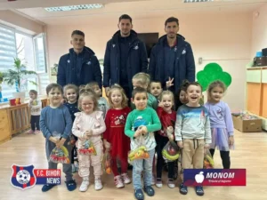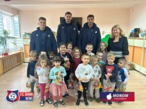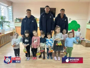 Miercuri, FC Bihor a adus spiritul sărbătorilor la Grădinița cu Program Prelungit Nr. 25 din Oradea, unde jucătorii noștri – Ioan Filip, Ionuț Ban și Ionuț Rus – au fost mesagerii Moșului, oferind surprize și multă bucurie celor mici.