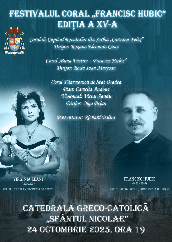 Episcopia Română Unită cu Roma, Greco-Catolică de Oradea, îi invită pe toți iubitorii de muzică la cea de-a XV-a ediție a Festivalului Coral „Francisc Hubic”. Evenimentul va avea loc vineri, 24 octombrie 2025, de la ora 19:00, în Catedrala Greco-Catolică „Sfântul Nicolae” din Oradea.