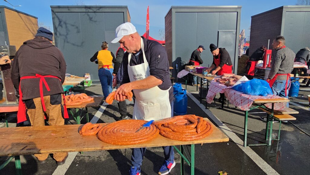 La Băile Felix a început, sâmbătă, cea de-a XII-a ediție a festivalului-concurs „D’ale porcului”, unul dintre cele mai mari evenimente dedicate preparatelor tradiționale românești din carne de porc. De această dată, organizatorii au mutat festivalul în parcarea de la intrarea în stațiune, o locație care s-a dovedit inspirată: vreme frumoasă, mulți vizitatori și o atmosferă de sărbătoare.