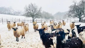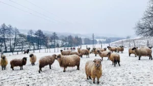 Sub mantia albă a zăpezii, viața la sat își urmează ritmul firesc. Oile adunate lângă fân, câinii veghetori și liniștea care cuprinde totul spun povestea unei ierni simple, curate și pline de suflet.