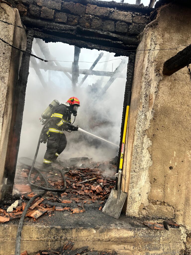 La sosirea echipajelor, flăcările se manifestau violent la nivelul întregii case, construite pe o suprafață de circa 30 mp.