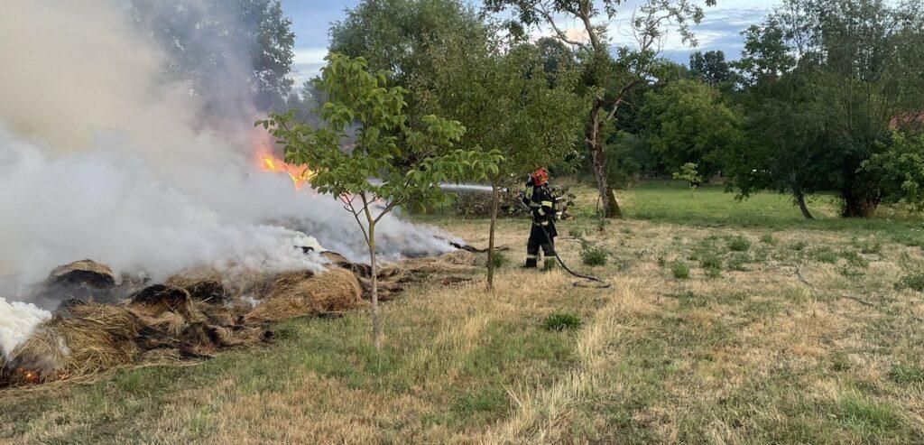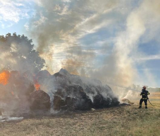 „În momentul sosirii pompierilor militari la fața locului, ardeau violent aproximativ 100 de baloți de paie, flăcările amenințând să se extindă la un lan de grâu aflat la câțiva metri distanță de focar.