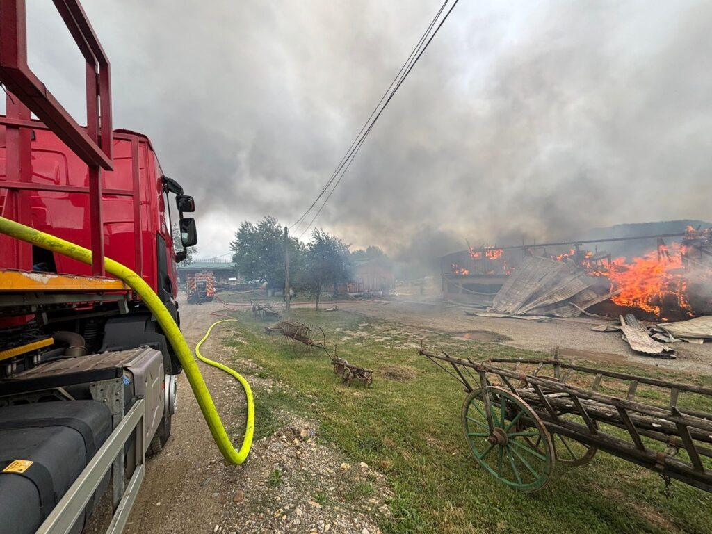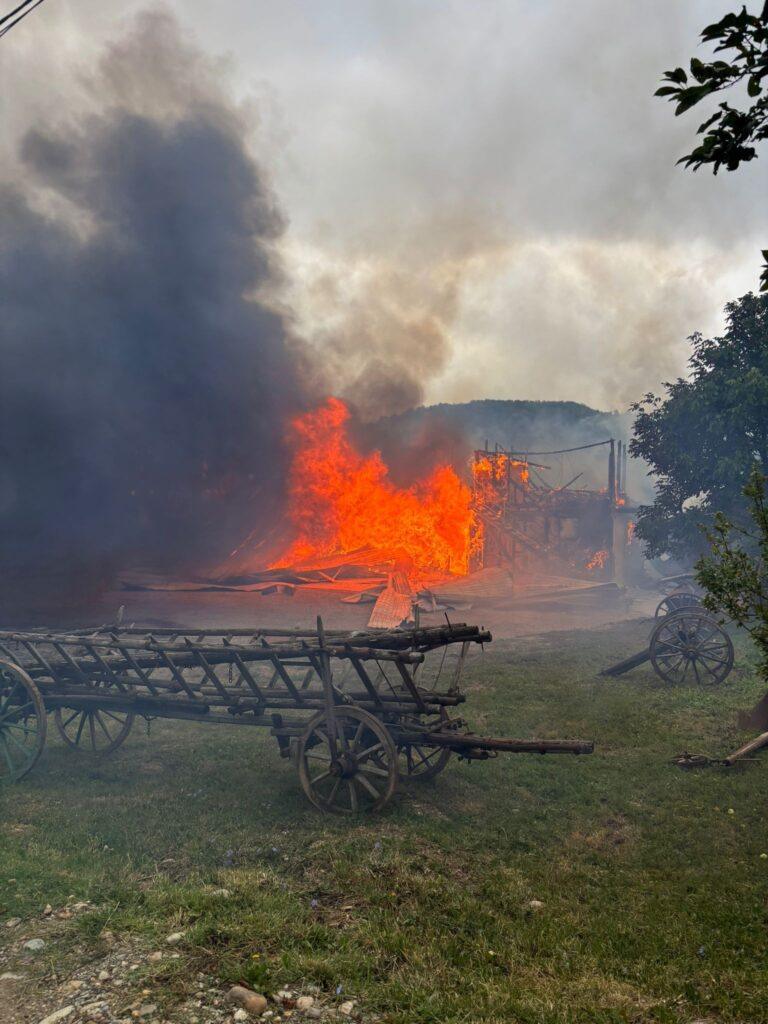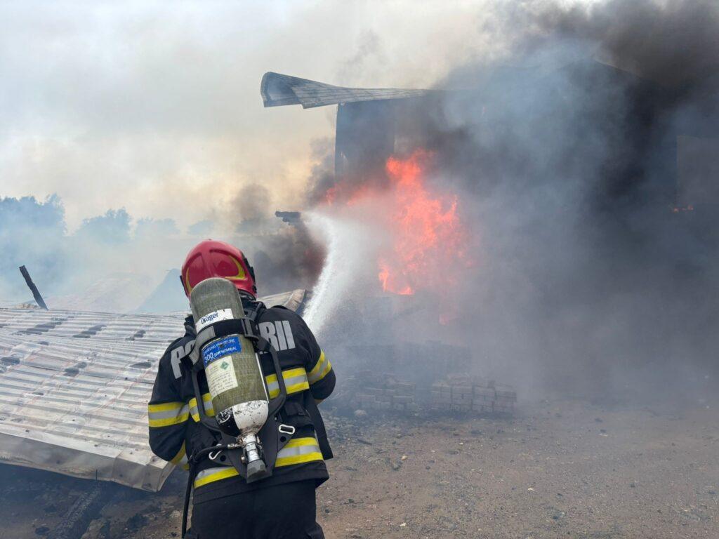 Echipajele de intervenție au salvat circa 140 de metri cubi de material lemnos, trei tractoare, o clădire alăturată și o construcție în care erau depozitați aproximativ 500 de baloți de fân.