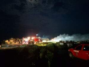 Potrivit acesteia, în momentul sosirii pompierilor militari la fața locului, ardeau violent sute de baloți de paie din cadrul unei stive de peste 3.000 de baloți, clădită pe aproximativ 100 metri lungime, 30 metri lățime și circa 6 metri înălțime, flăcările amenințând să se extindă la întreaga cantitate de paie.